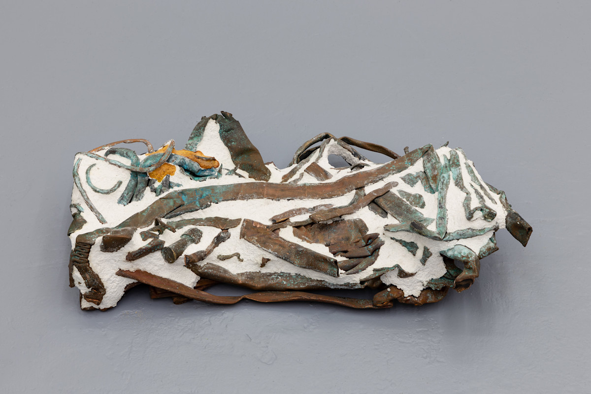 Estas obras de João Hogan e de Bruno Cidra falam-nos daquilo que, muito intimamente, diz respeito ao homem e à relação do homem com o mundo, com o mundo tal como ele é, como é visto, como é contactado, como é construído. Falam-nos de algo que tem que ver com a mais sincera relação com a matéria, a relação das mãos com a matéria em chamas ou humedecida, dando-nos a conhecer a sua manipulação e a sua possível metamorfose, sob práticas e experiências alquímicas, ancestrais, primitivas, entre fios de água e línguas de fogo, trevas e revelação, obscuridade e luz. Falam-nos também, pela tão franca afinidade à matéria, da experiência do tempo e da acção do tempo sobre as coisas, sobre a condenação ao pó e à ferrugem, à corrosão do metal, à deterioração do papel, sentença inexorável daquilo que é usado, manuseado e deixado para outros tempos e para outros olhares. Há marcas de placas de cobre que foram superfície do traço e da mancha, “mordidas” pelos sucessivos banhos de ácido, buriladas, raspadas, riscadas; formas no espaço gravadas e entregues ao papel, reveladas através da tinta negra. Há esculturas que nos deixam vislumbrar fios e canos de cobre esverdeados, azulados, vísceras metálicas compactadas, agrupadas, moldadas, pisadas; corpos suspensos, esqueletos pousados, formas reintegradas pela pasta de papel outrora húmida, contaminada pela cor térrea da ferrugem. Fragmentos daquilo que, uma vez vencida a solidez e brutalidade da matéria pesada, se fez leve. Mas mais do que de ruínas, fragmentos e vestígios do que fica depois do tempo, o trabalho de gravura de Hogan e o trabalho de escultura de Cidra falam-nos sobretudo da vida, do engenho das mãos em tributo à terra, de uma nostalgia original pelo que é terreno, pela conquista primitiva dos elementos, pelo conhecimento das suas leis e dos seus movimentos, das suas forças, pulsões e suspensões, equilíbrios e perturbações, fazendo-nos reconhecer, assim, essa eterna resiliência do homem perante um mundo que é alcançado, que é compreendido, e que nos é dado tão claramente a redescobrir através do trabalho desses que, recorrendo às palavras de José Augusto França, vivem “no gosto de lidar com as mãos” [4].